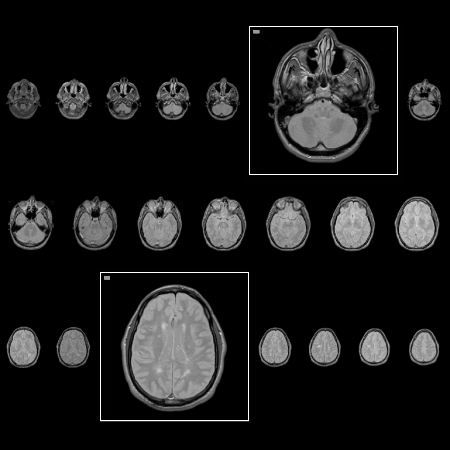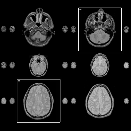 The algorithm We developed an algorithm that creates a screen layout for sequential images, displaying detail while maintaining context, and uses the available screen space effectively. It also allows for comparison of multiple images, preserves the aspect ratio of the images, and matches the user's reading habits. The main idea of our approach is to maintain horizontal but not vertical alignment. This decision was made because there is no meaningful relationship between images in the same column. Therefore, maintaining vertical alignment may be too constraining. In addition, this new layout does not produce ghost foci and, as a result, appears less distracting. Our algorithm utilizes a one-dimensional array that contains all images. Every image that will appear magnified is set to the same fixed size to facilitate comparison between images. The array is then divided into multiple rows and the non-magnified images are resized to fit the row height and the window width. Every row contains the same number of images so they can be localized easily. This remains constant whether images are magnified or not. Figure 2 shows an example with two foci. The main disadvantage to this algorithm is that when many images in the same row are magnified, the surrounding images become very small. Applications and observations Results of observations of radiologists using MRI films on a light screen support our layout method. Traditional films vary in the number of columns and are read in the same order that written text is read in Western cultures, that is, from left to right and from top to bottom. Thus, images in the same column are not related and therefore, vertical alignment is redundant. Horizontal alignment is maintained so that a row can be scanned with a single eye movement. We have implemented a system that utilizes our algorithm to layout sequential images. We have used it to display MRI scans (spatially sequential data) as well as meteorological images (temporally sequential data). Future work A formal user study will be run in February 2000 to evaluate this proposed detail-in-context technique for the presentation of MR images. The experiment will involve radiologists as participants to compare the proposed algorithm with a typical layout utilized in most PACS. We will also compare this algorithm against the traditional light screen. Both quantitative and qualitative data will be gathered to examine the effectiveness of our approach for presenting and analyzing MR images. This study will also help to determine users' attitudes towards this new approach. Acknowledgements I would like to thank Dr. Kori Inkpen, Dr. Stella Atkins, Dr. M. Sheelagh Carpendale, and members of the EDGE Lab for their help and guidance in this project. Also, the help of the radiologists at Vancouver Hospital is greatly appreciated. References |