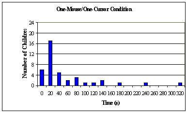 (b) Figure 4. Histogram distributions showing the amount of time children exhibited off-task behaviour in (a) the one-mouse/one-cursor condition and (b) the two-mouse/two-cursors condition.